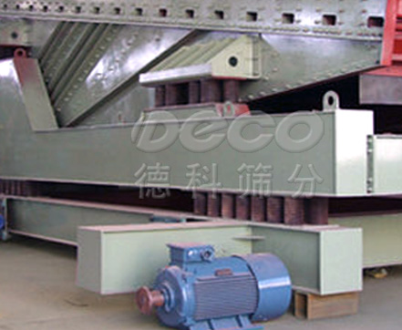德科生產的冷礦篩冷均為座式安裝。采用雙軸激振器,電機不參振,由兩臺電機外拖作反向自同步旋轉,使篩體沿直線方向作周期性往復運動,從而達到篩分目的。