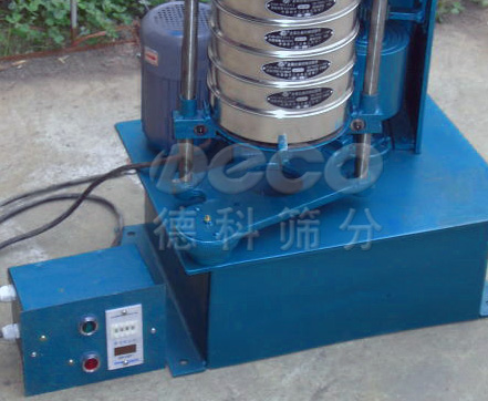 二、德科拍擊篩的主要結構 拍擊式標準振篩機(拍擊篩)主要由機座、篩與傳動機構等部分組成。 本拍擊篩可配備專用夾具、即可裝夾Φ200試驗篩,又可裝Φ75、Φ100套篩,裝夾方便靈活,夾緊牢靠,并能自動停機。